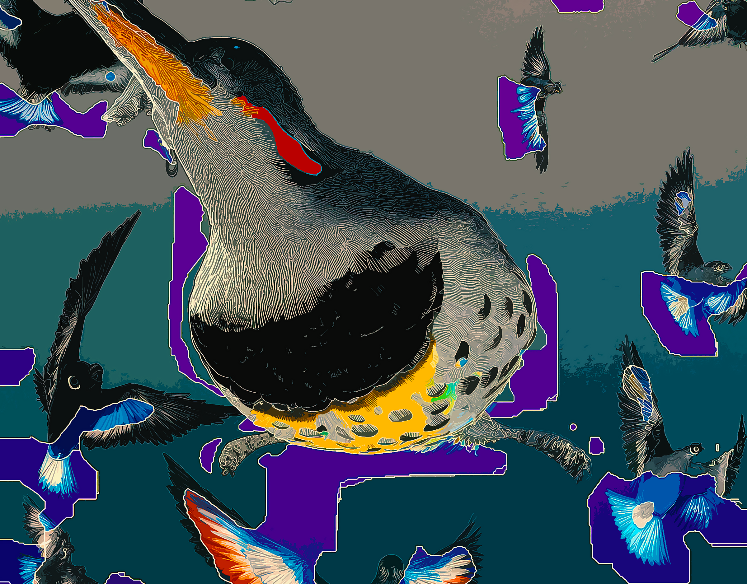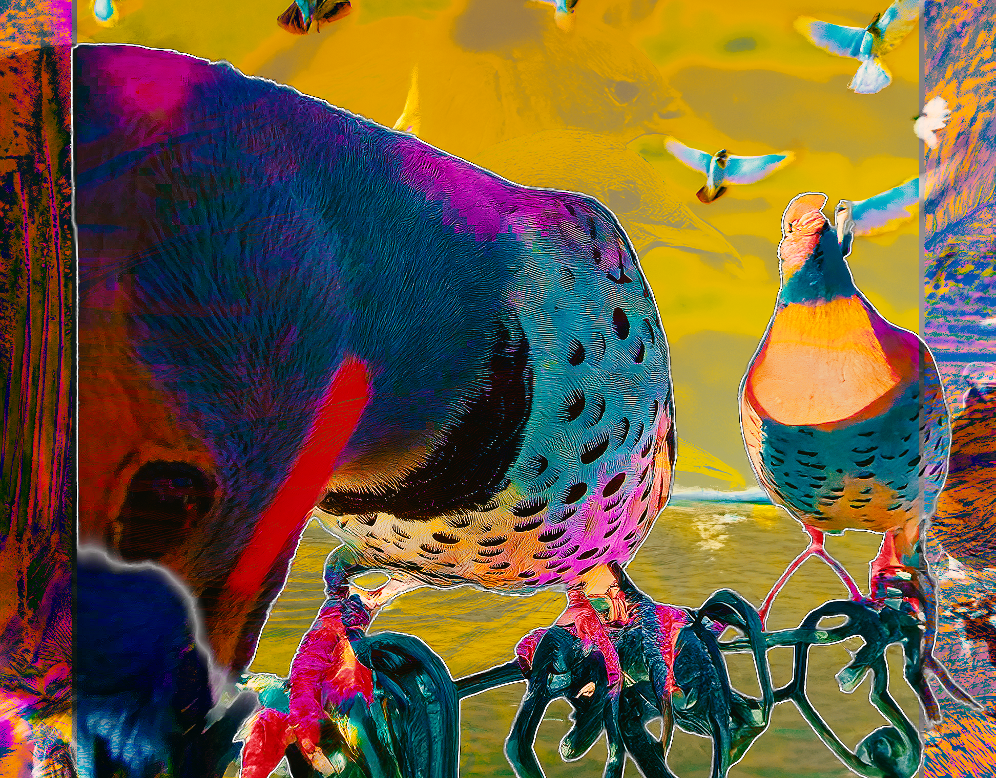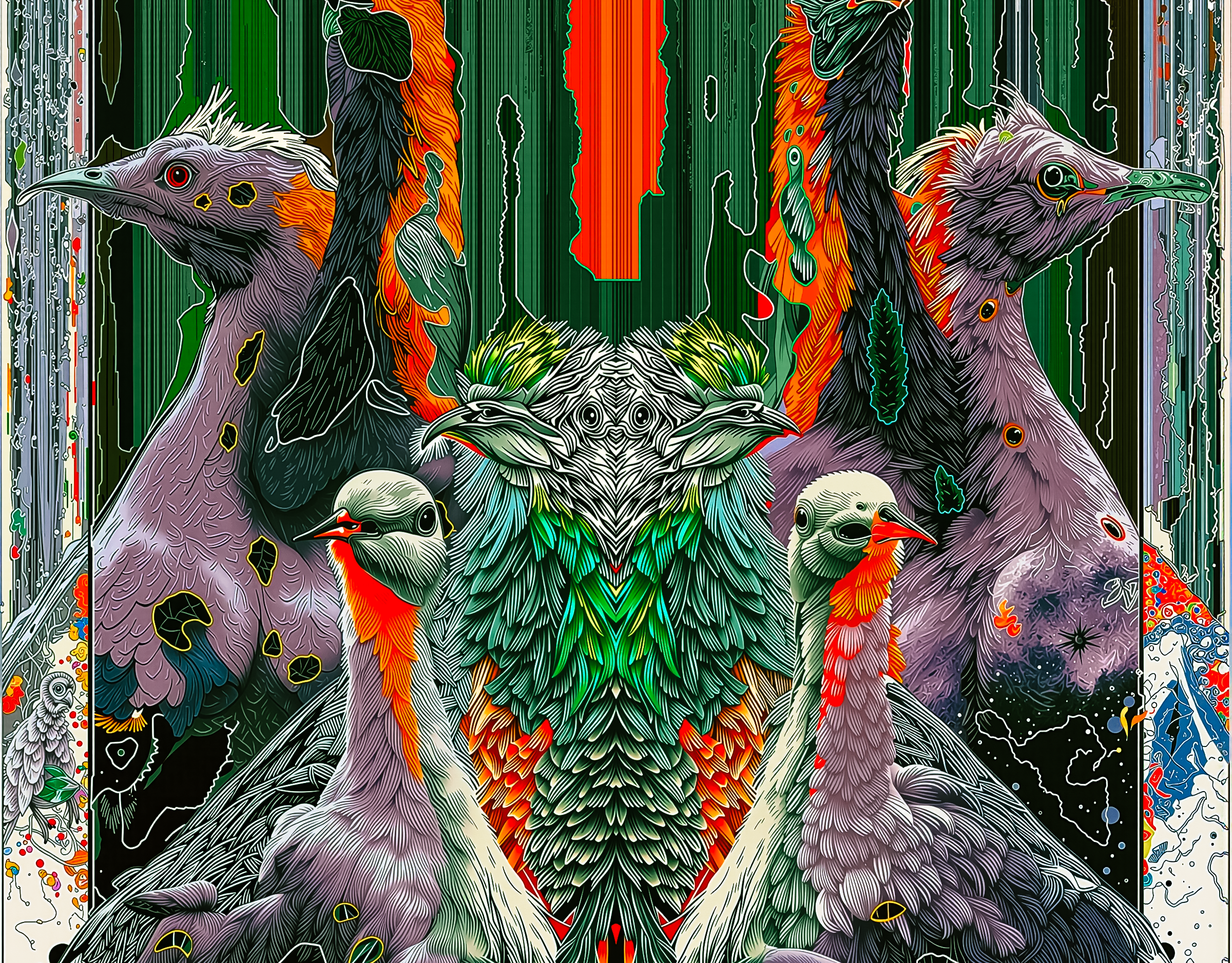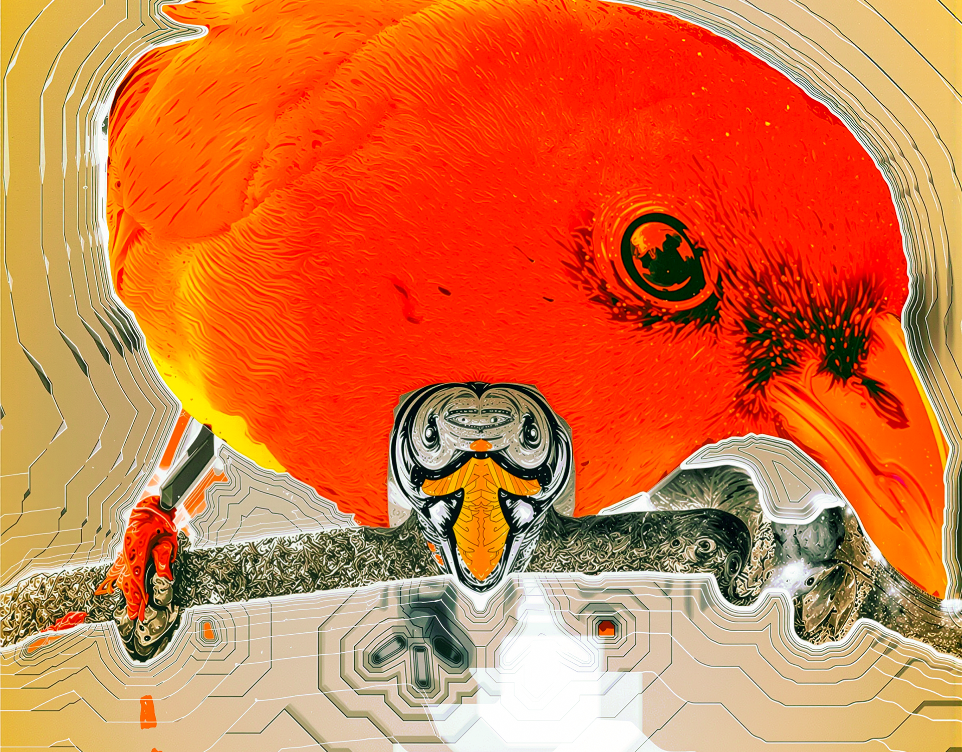 BIRDS ON ORANGE